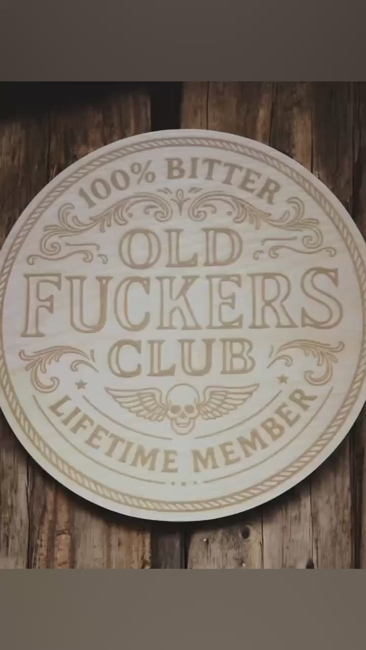 This “Old F*ckers Club – Lifetime Member” sign is laser-engraved on real wood and designed to look like it’s been around long enough to stop caring what anyone thinks—because it has. Featuring vintage typography, decorative flourishes, and a skull-and-wings emblem, it’s the perfect badge of honor for anyone who’s officially out of patience.