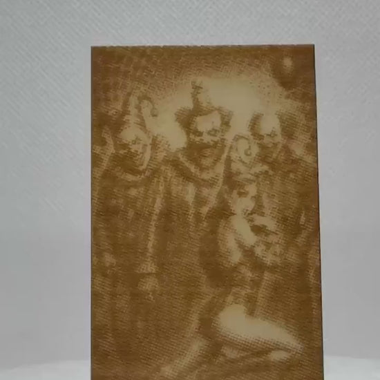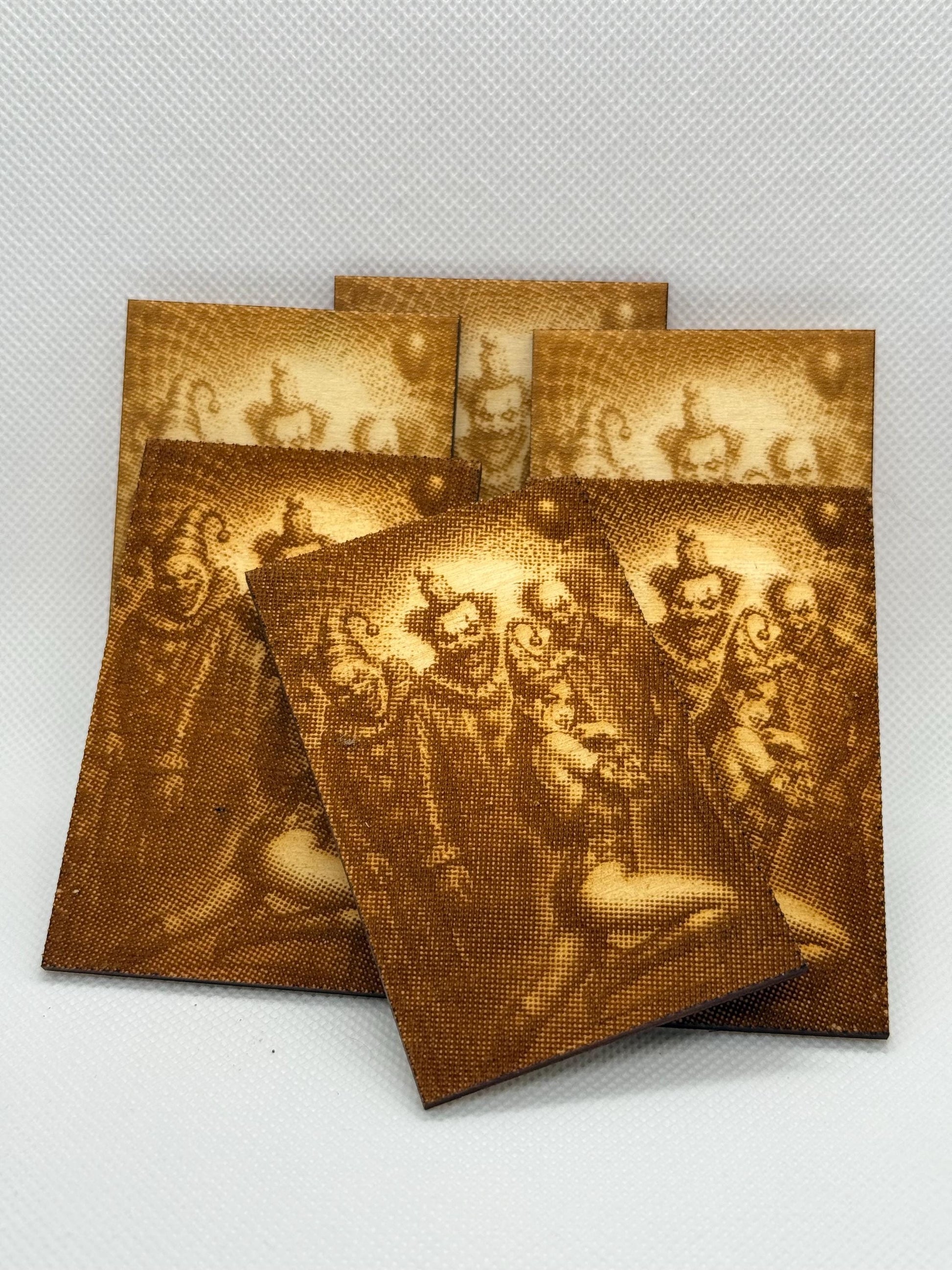 This 2”×3” magnet is laser-engraved on real birch wood, which means every piece has its own unique grain, charm, and occasional attitude problem. The artwork features delightfully creepy characters that look like they crawled out of a haunted carnival, your childhood nightmares, or both.