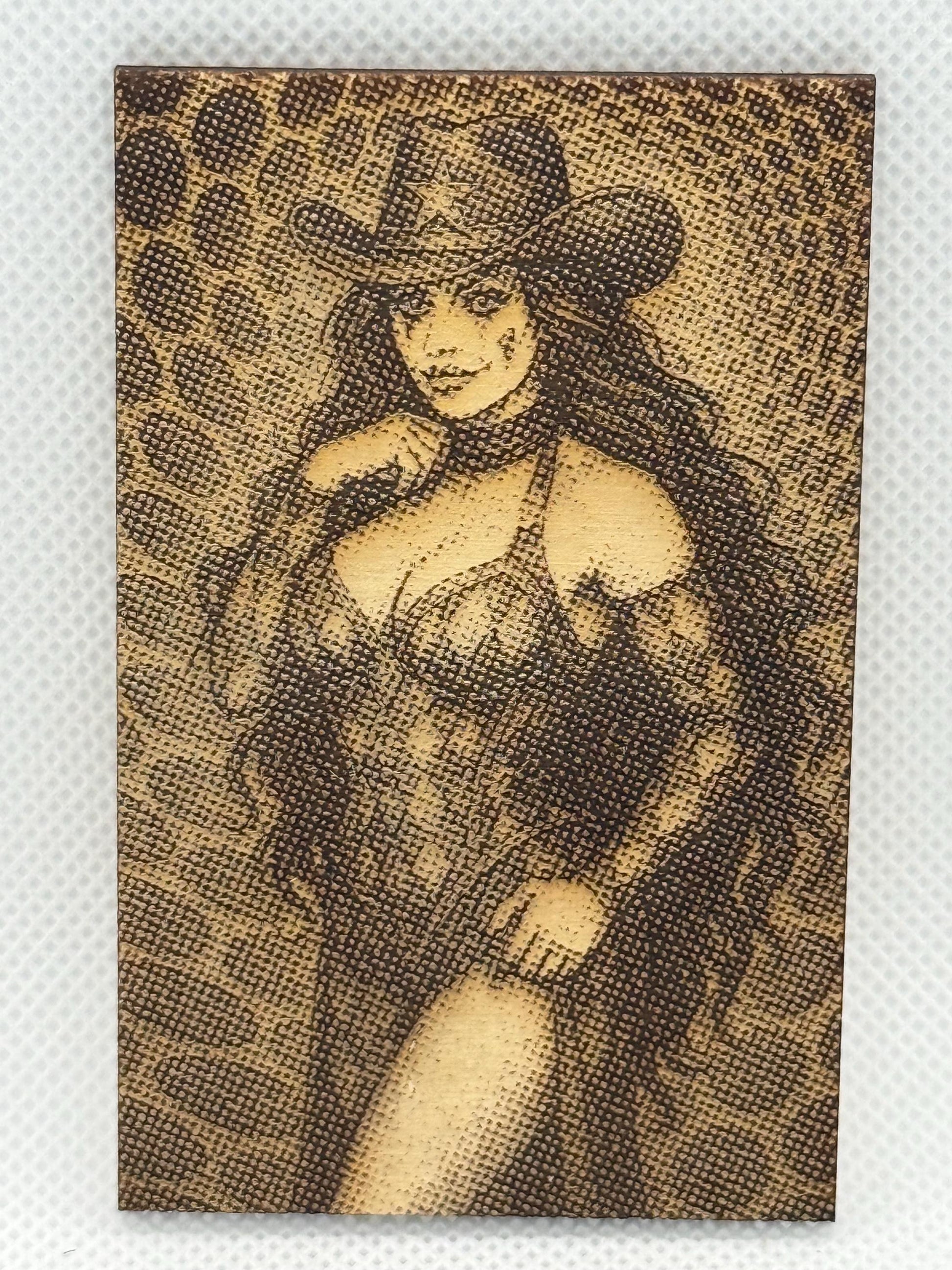 Laser Engraved Sexy Harlequin Cowgirl Magnet