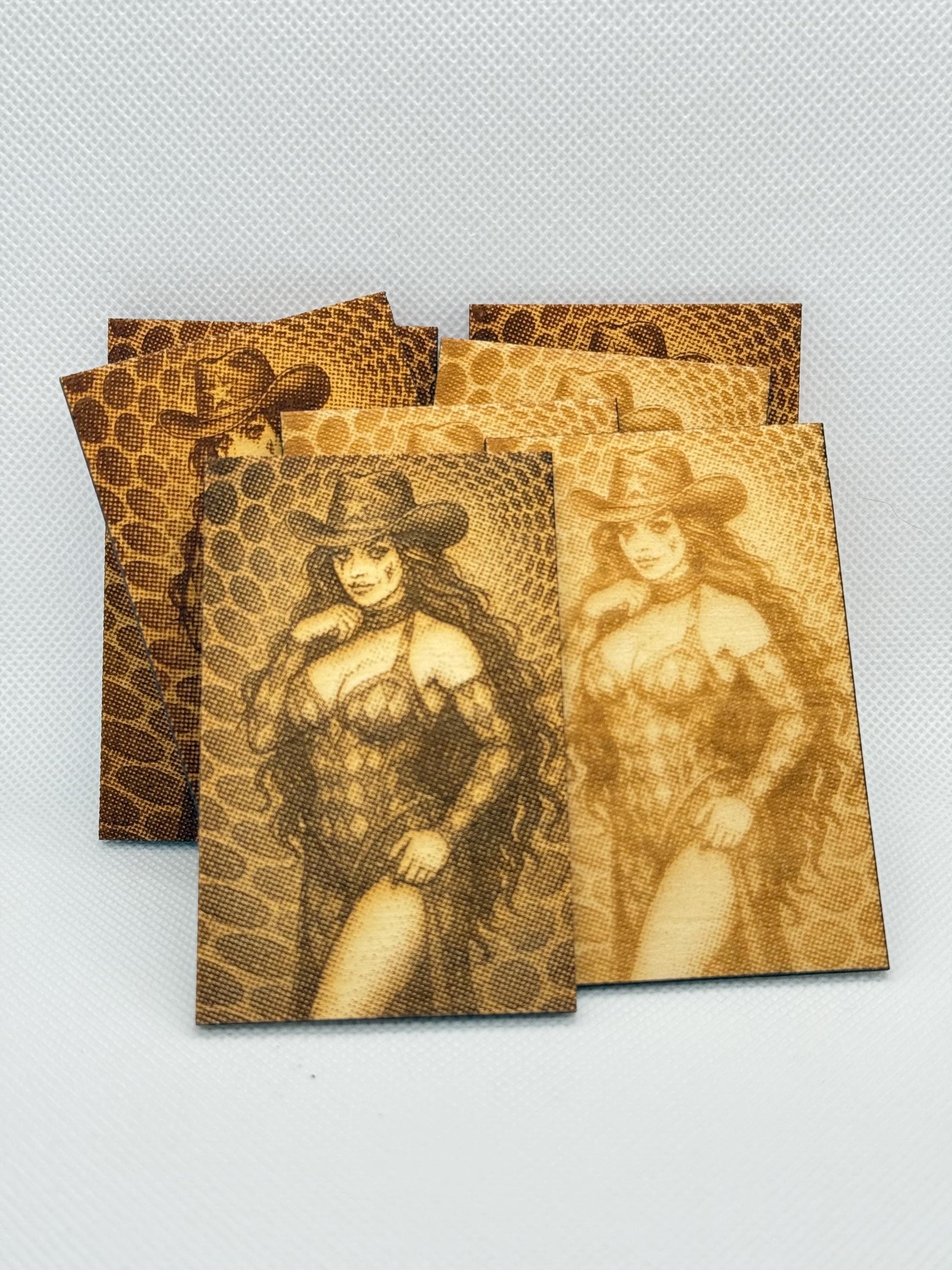 Saddle up, partner—this magnet brings all the Wild West charm and all the unsettling “I know secrets you don’t” vibes. This mysterious cowgirl looks like she could flirt with you, haunt you, and steal your horse in one smooth motion.